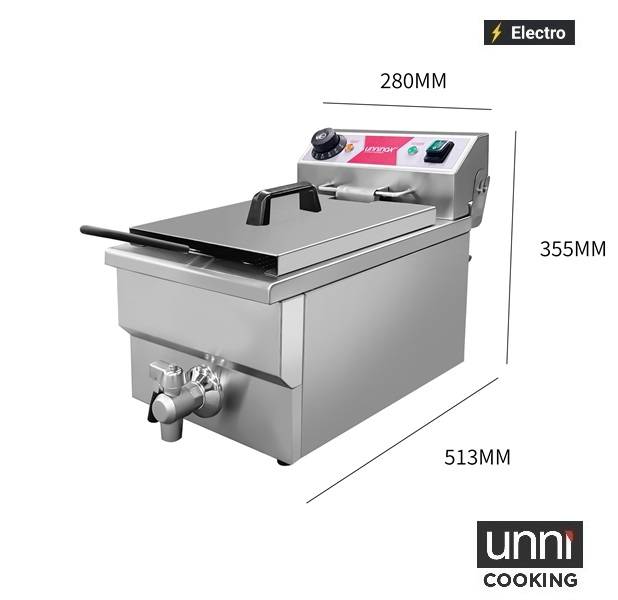 Ontdek de veelzijdigheid van de UNNI-COOKING BUDGET E608DF – een compacte en efficiënte tafelmodel friteuse, ideaal voor gebruik in restaurants, buffetten, foodtrucks en op locatie tijdens evenementen.