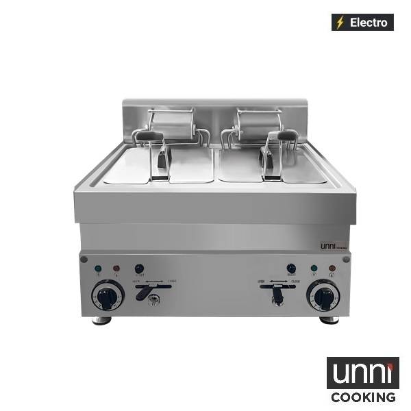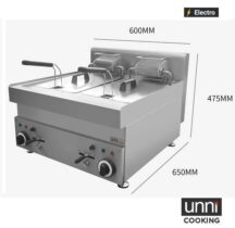 Ontdek de kracht en efficiëntie van de professionele elektrische friteuse UNNI-COOKING ECO – model E65TS-20. Deze dubbele tafelmodel friteuse is ontworpen voor intensief gebruik in horecazaken, snackbars en foodtrucks, waar snelheid en kwaliteit hand in hand gaan.