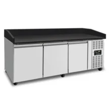Deze professionele UNNICOOL pizzawerkbank met euronorm/bakerynorm interieur (EN 600×400) is uitgevoerd met een duurzame RVS binnen- en buitenkant en een stijlvol zwart granieten werkblad. Dankzij de krachtige geforceerde koeling en ruime opslagcapaciteit is deze werkbank bijzonder geschikt voor intensief, dagelijks professioneel gebruik in pizzeria’s en horecakeukens.