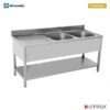 Spoelwerktafel | RVS | Links 2 Spoelbakken + Bodemschap | Zelfmontage | Achteropstand | 2000x700x850(h)mm